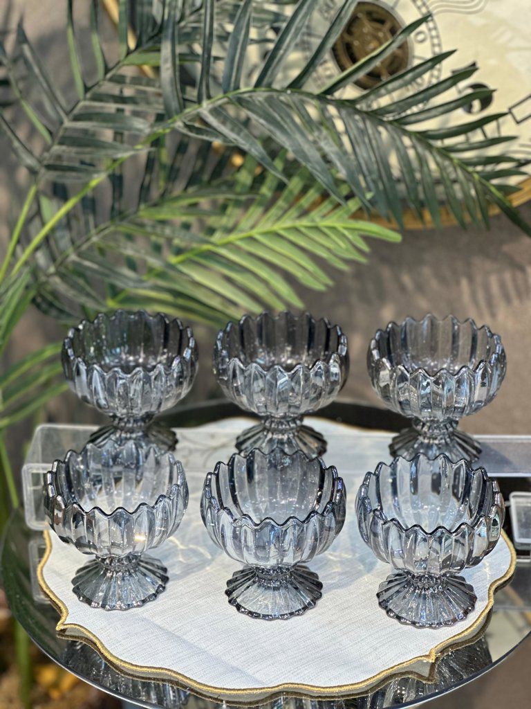 Cam 12 Parça 6 Kişilik Tabaklı Kase Füme