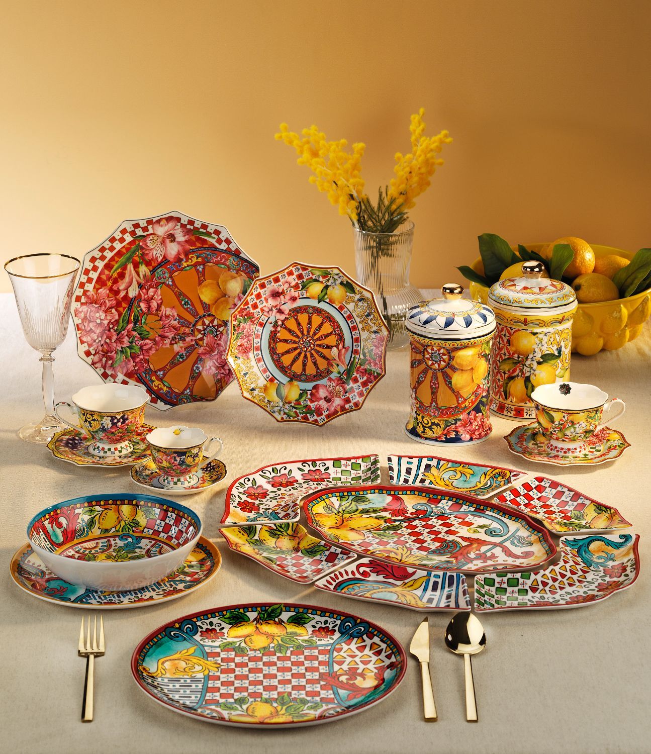 Canlı Desenler ve Yüksek Çözünürlüklü Baskı: Kaselerin iç yüzeyini süsleyen ikonik limon motifleri, İtalyan seramik sanatının estetiğini yansıtır. Parlak ve canlı renkleri, her sunuma anında neşe ve şıklık katar.