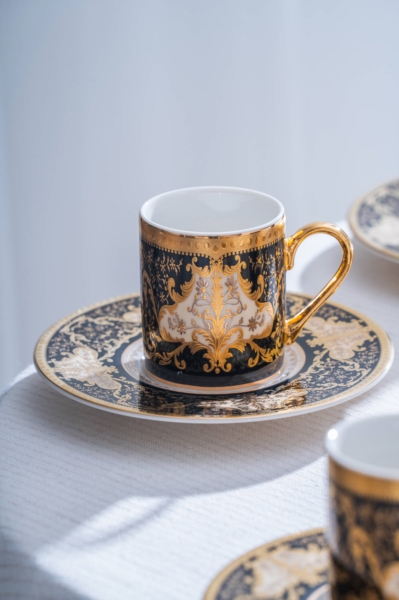 Milolica 24K Altın Detaylı 6 Kişilik Porselen Kahve Fincan Takımı - 100 ml