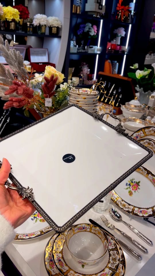 Porselen Eskitme Çerçeveli Ayaklı Sunumluk Büyük Boy