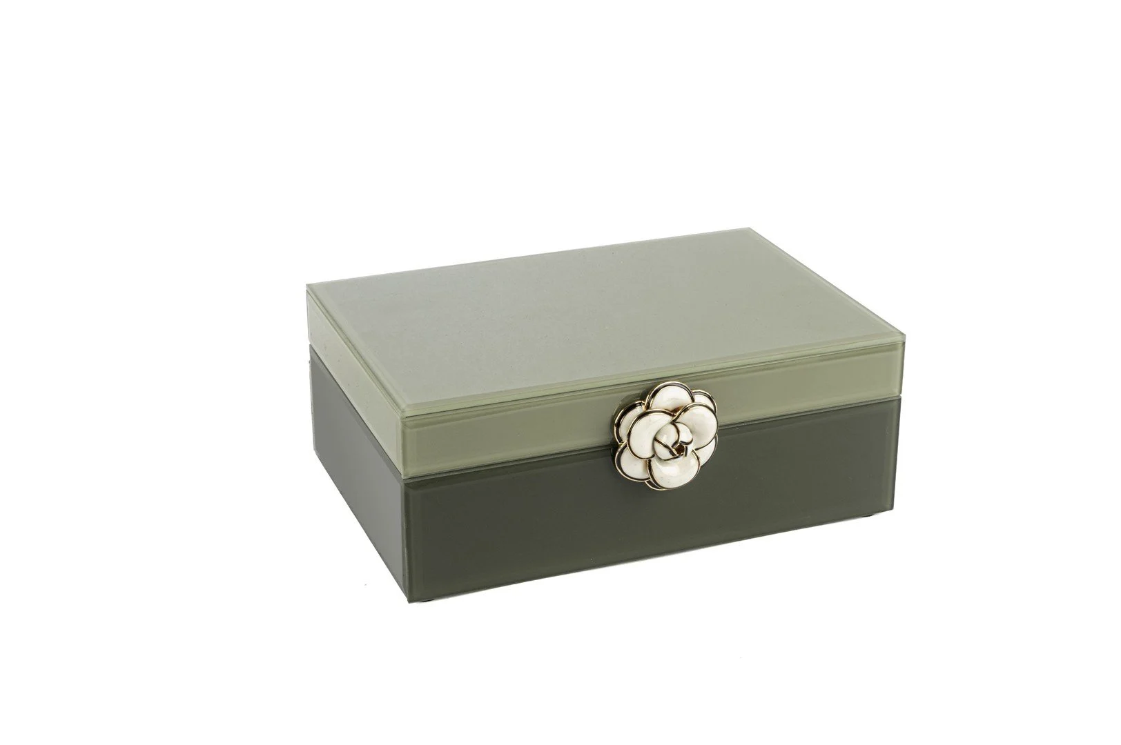 Yeşil Cam Çiçekli Dek Kutu 22x17x9cm